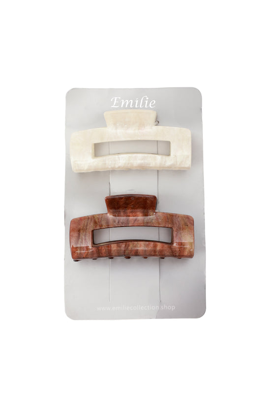 2x haarklem bruin & ecru