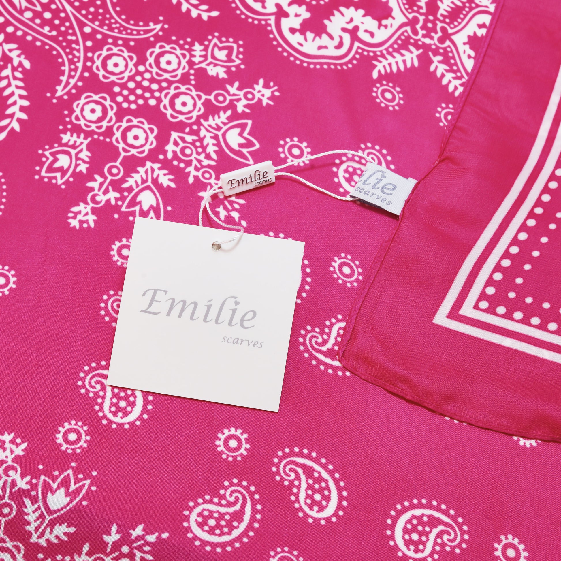 This luxurious satin scarf from Emilie Scarves. The smooth satin fabric feels soft, drapes smoothly, and has a subtle sheen. Its 70x70 cm size makes it a versatile accessory you can wear in multiple ways: around the neck, in your hair, attached to a handbag, or as a stylish detail with a blazer.