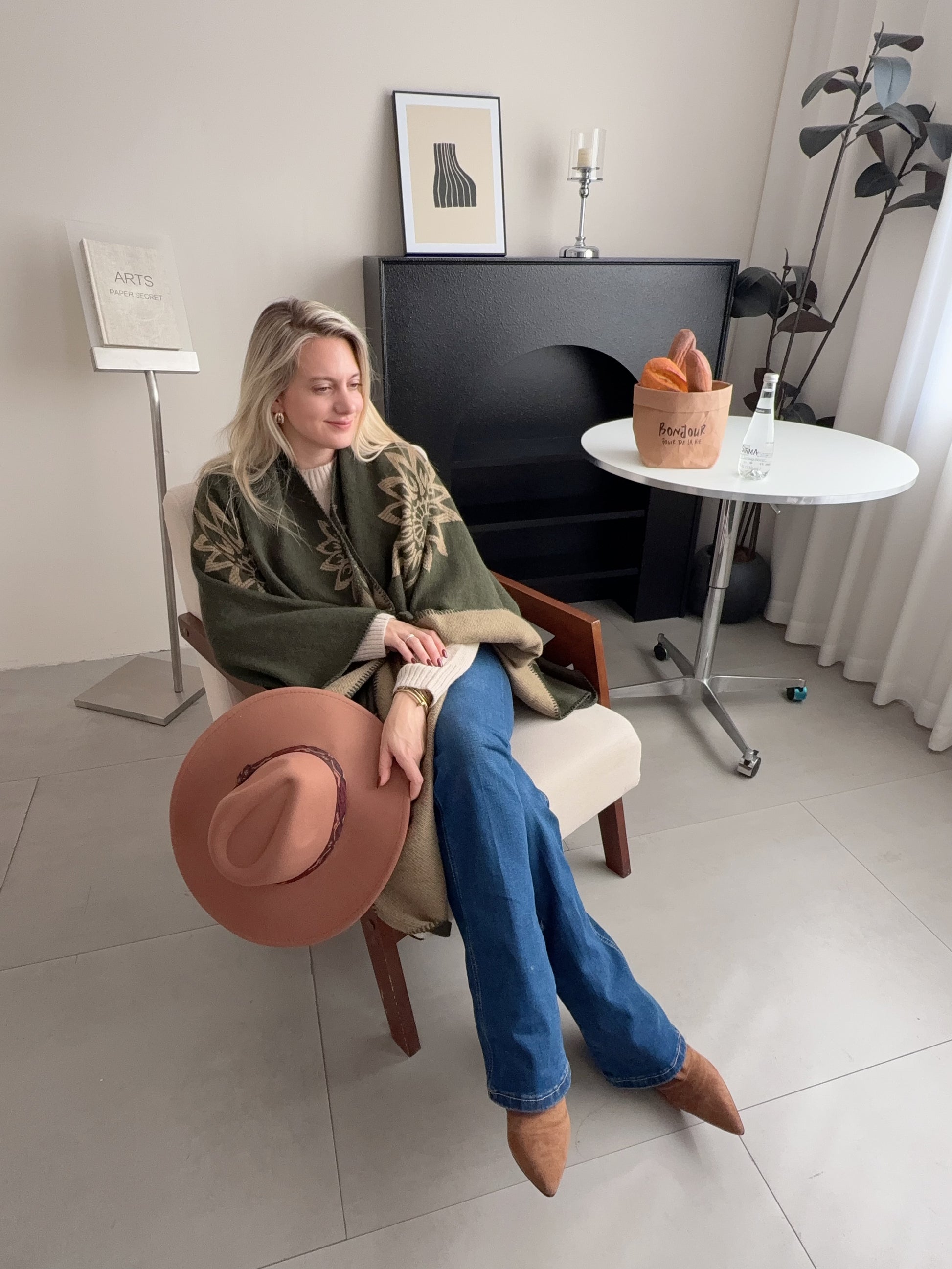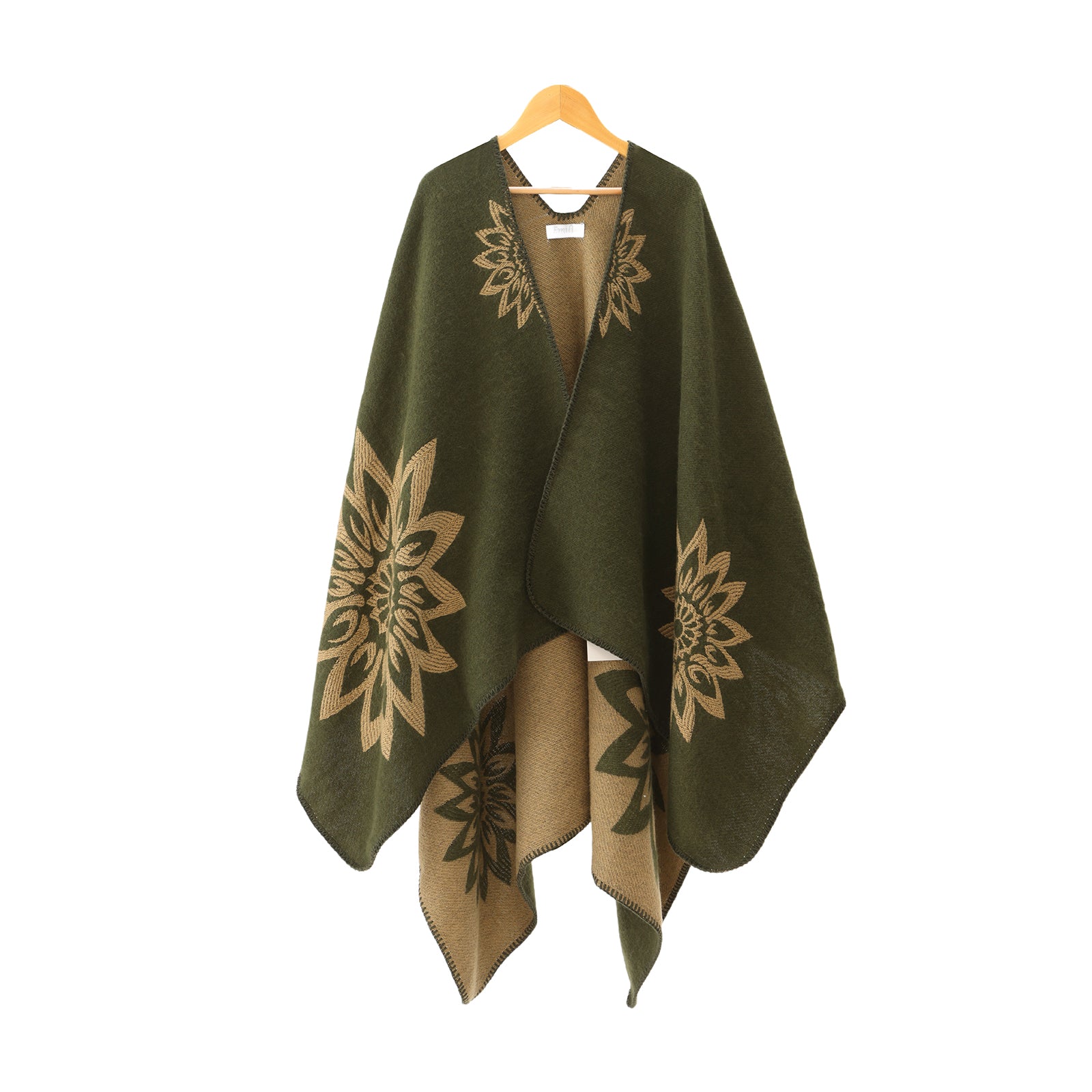 Winter Poncho green flower print